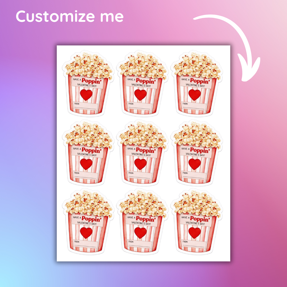 Designed specifically to fit applesauce cups, cookie bags, and popcorn bags, these labels turn everyday snacks into thoughtful Valentine’s Day treats kids love.